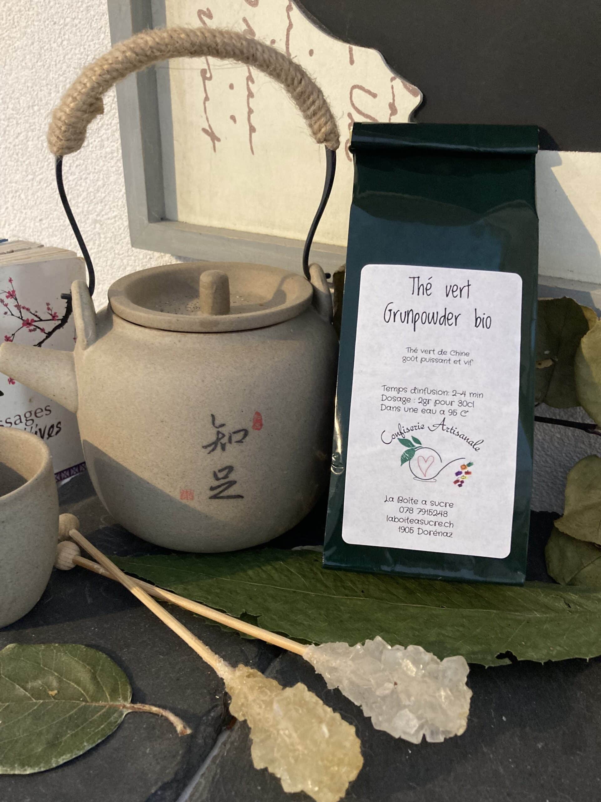 thé vert grunpowder issu de l’agriculture biologique.
